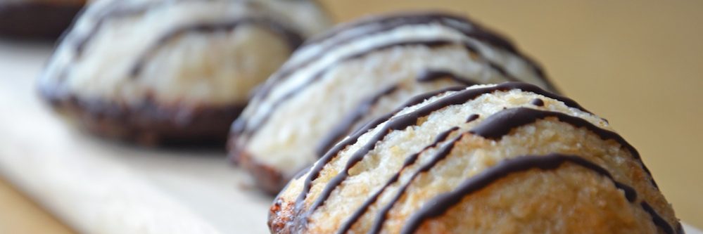 - Use the remaining chocolate to pour over the top of the macaroons in any pattern you wish.